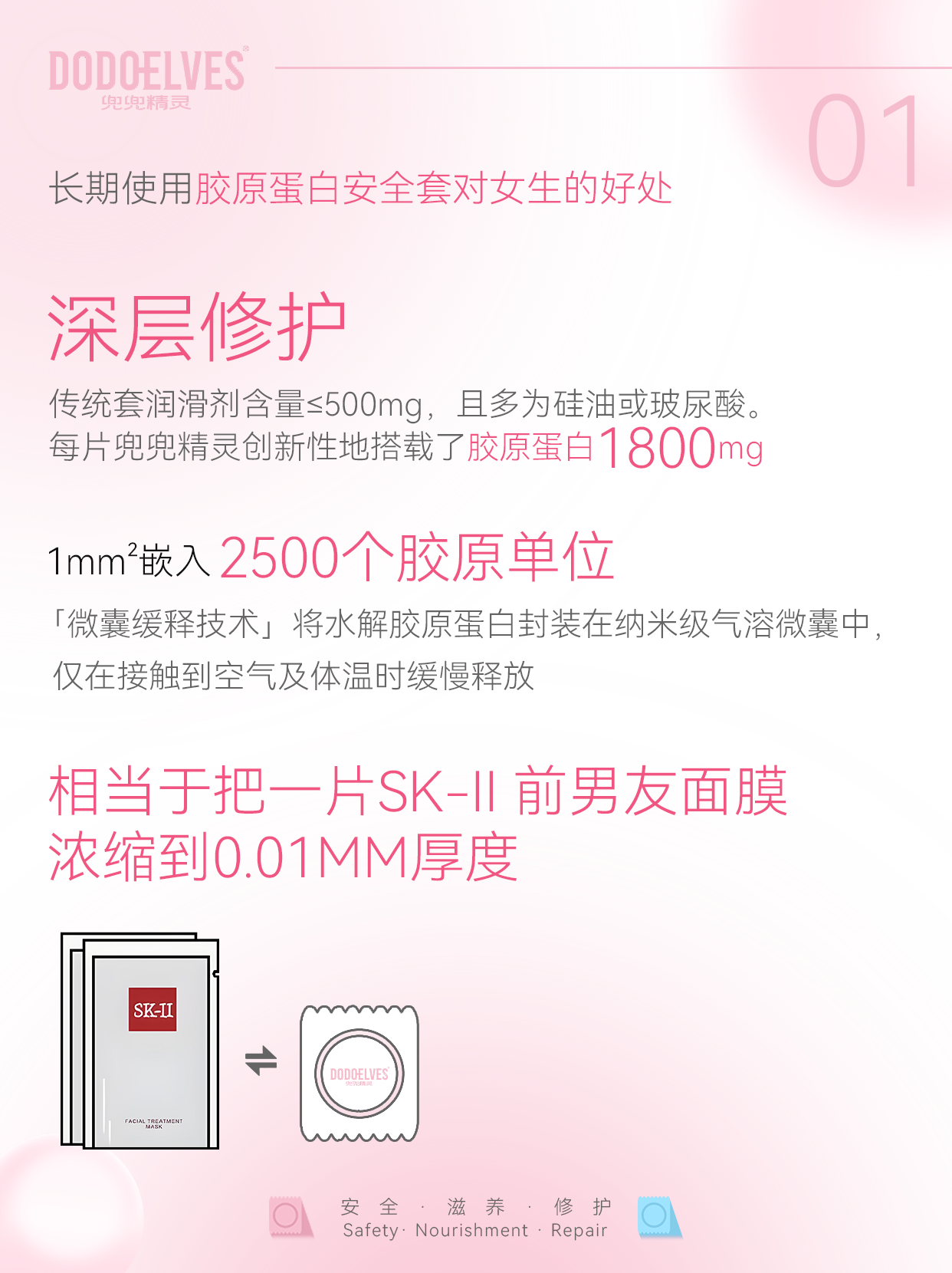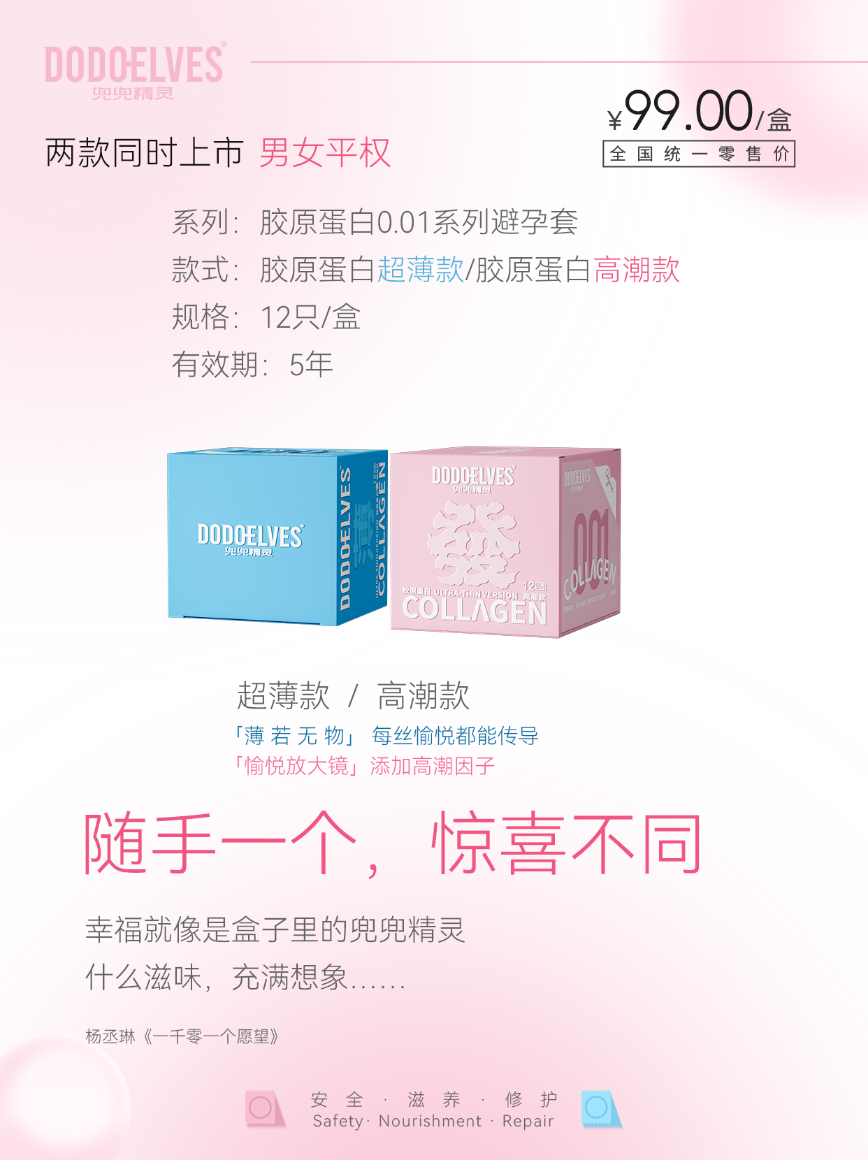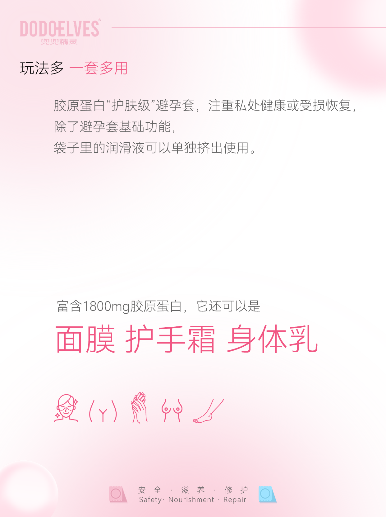品名:兜兜精灵胶原蛋白安全套(超薄款/高潮款) 成份:胶乳橡胶、胶原蛋白液 规格型号:W52+2mm 光面型(12只装) 生产地址:桂林市临桂区会仙镇会仙工业园区 医疗器械生产许可证编号:桂药监械生产许20140002号 医疗器械注册证编号:桂械注准20192180073 保质期限:5年